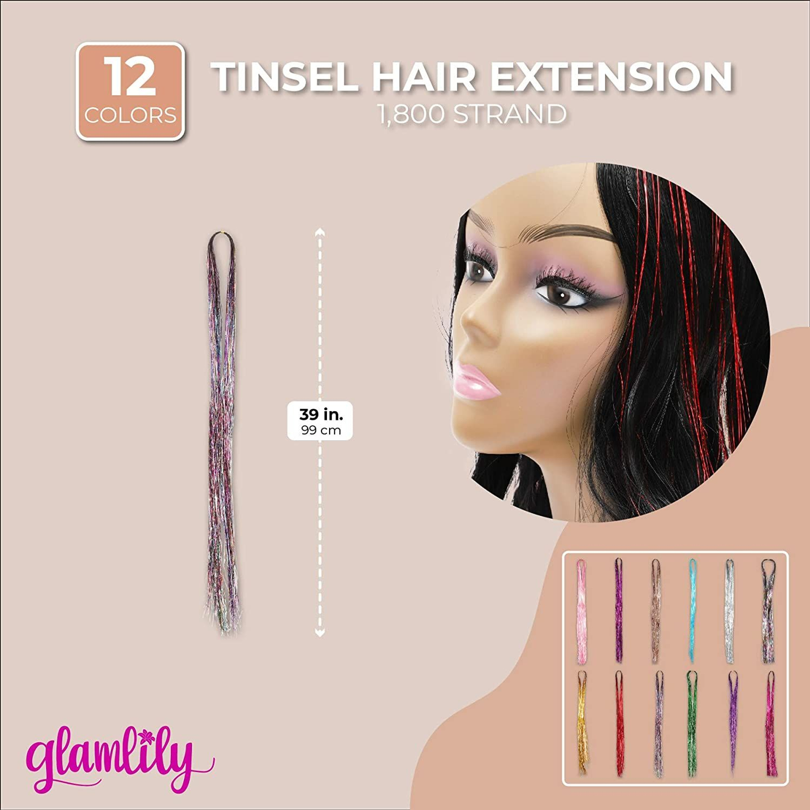 39 Hair Tinsel 1800 Strands Sparkling Shiny Glitter Tinsel Fairy Hair Extensions Party Highlight Bling Hairpiece For Women 12 Colors Walmart Com